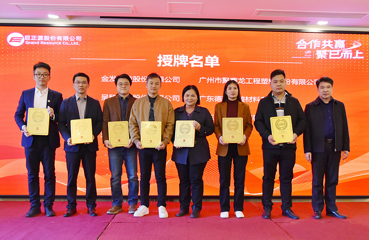 會議期間,巨正源向30家合作伙伴頒發2024年度戰略合作伙伴、優秀客戶等獎項。廣物控股集團領導、巨正源領導班子為獲獎客戶頒發牌匾。
