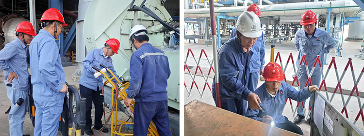 檢修前,股份公司、科技公司領導帶隊到一期廠區(qū)開展停產(chǎn)檢修專項安全檢查,壓緊壓實各方安全責任,排查風險消除隱患,并采用“四不兩直”方式到檢修現(xiàn)場重點檢查臨時用電、起重吊裝、個人防護、作業(yè)規(guī)范執(zhí)行及安全措施落實情況等。