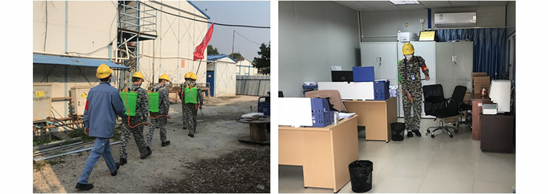同時,巨正源科技公司青年戰(zhàn)疫突擊隊利用周末時間對中石化四建、甬港工程、中化三建及公司板房辦公區(qū)、公共區(qū)域進行大規(guī)模預(yù)防性消毒。隊員們背著消毒噴霧器,從室外到室內(nèi),從地面到扶手,不放過一處死角,不留下一處隱患,用實際行動彰顯了青年戰(zhàn)疫突擊隊的擔當和使用,以昂揚向上奮斗姿態(tài)投身到疫情防控工作中,將落實疫情防控措施到位。
