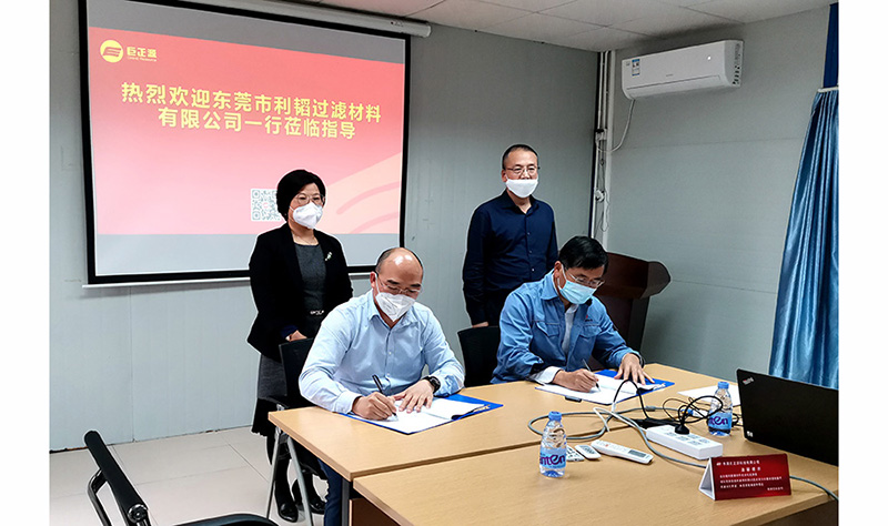 3月18日,東莞市利韜過濾材料有限公司董事長顏一旭一行蒞臨巨正源科技進行業務交流。巨正源科技公司董事長王立貴、總經理李漢初予以熱情接待,雙方深入探討開發各種過濾用的無紡布、熔噴布等聚丙烯專用料,形成穩定的聚丙烯生產、加工產業鏈良好合作關系,并簽署了《戰略合作協議書》。