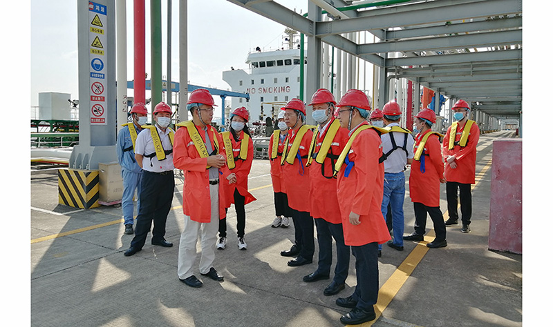 駱貴全一行先后參觀了巨正源公司旗下的盛源油庫、鴻源碼頭、聚丙烯項目一期生產(chǎn)現(xiàn)場和二期建設(shè)現(xiàn)場,詳細了解油庫和碼頭的運作情況、聚丙烯項目一期生產(chǎn)運營和二期工程建設(shè)情況。