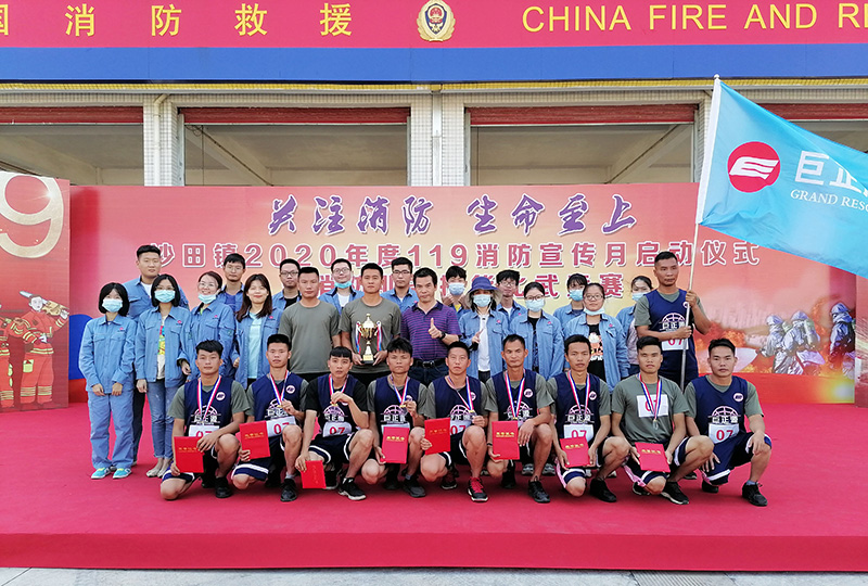 沙場秋點兵,群英大比武。11月9日,“關注消防、生命至上”——沙田鎮2020年度119消防安全宣傳月活動啟動儀式暨消防業務技能比武競賽在濱海灣新區消防大隊隆重舉行。來自轄區內的23家安全重點企業參加了比武競賽。巨正源旗下盛源石化、科技公司組織消防隊伍參加競賽,分別榮獲團隊一等獎、二等獎,并在多個項目中取得了優異的成績。