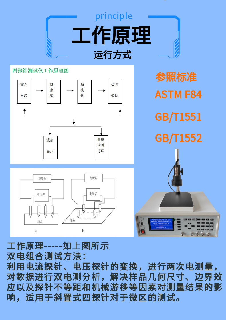 三.四探針電阻率/方阻測試儀按照便捷性劃分為手持式和臺式機型,比如需隨身攜帶的手持四探針測試儀就是便捷用途;