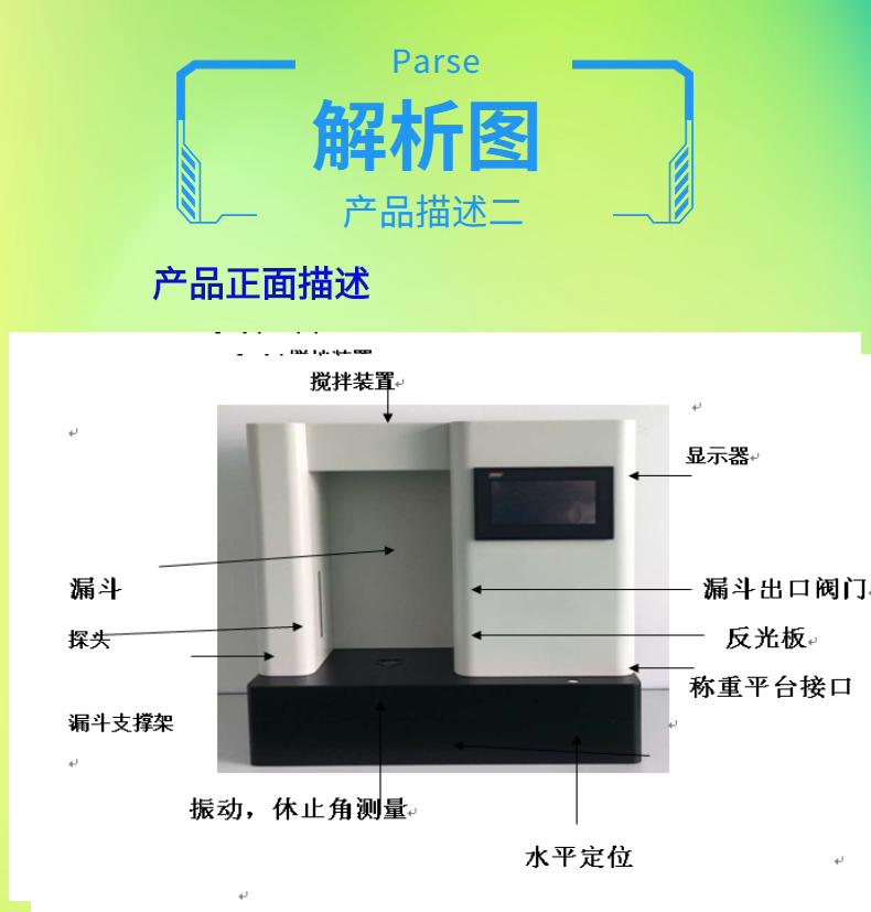 3.藥品包裝和運輸:粉體綜合特性測試儀可以測量藥品的流動性和松裝密度,幫助確定合適的包裝和運輸方式,保證藥品在運輸過程中的穩定性和安全性。