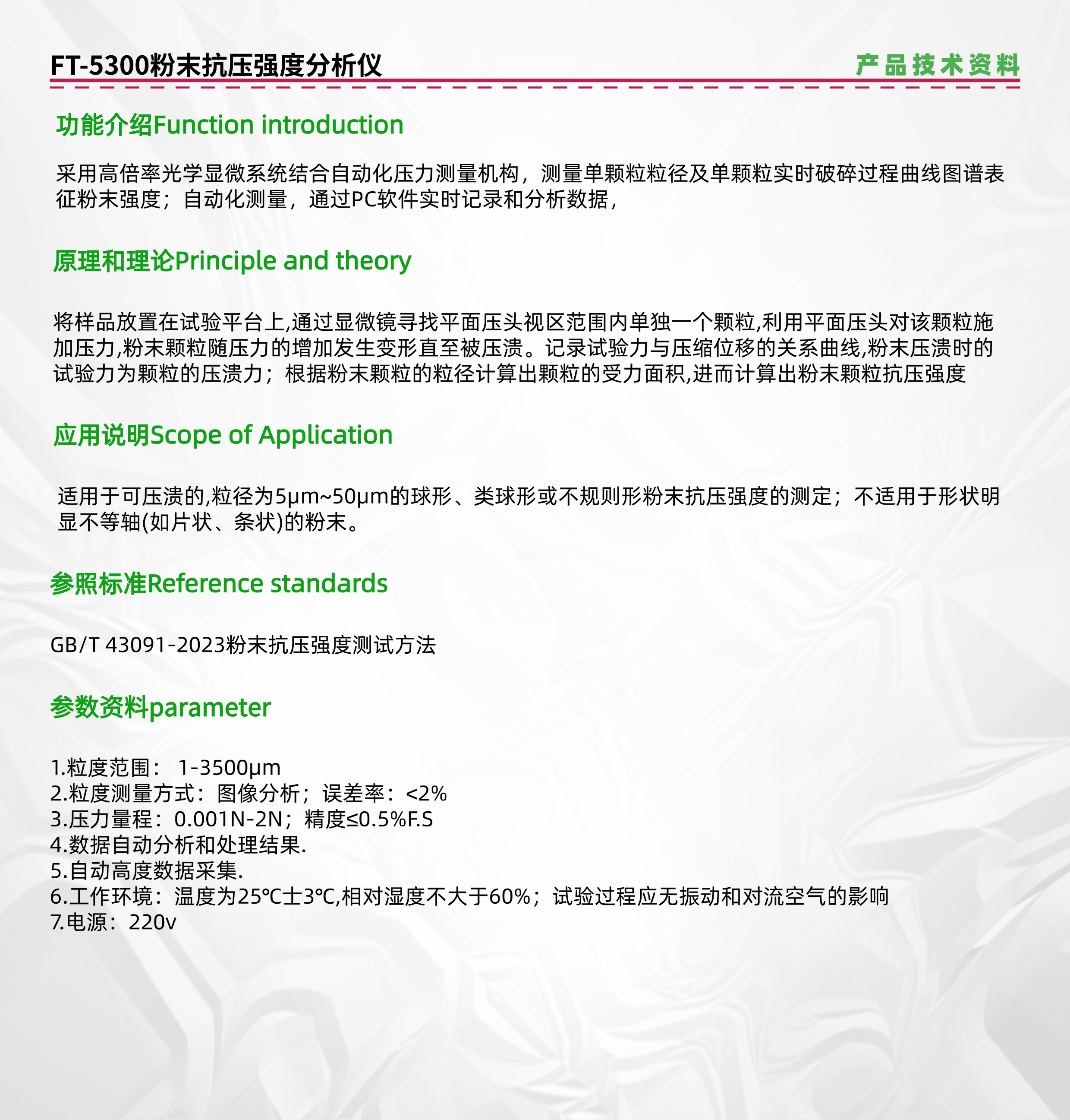 粉體單顆粒強度反映了單個粉體顆粒抵抗外力破壞的能力,其測量方法多樣,在多個領域都有重要應用,以下是具體介紹:
