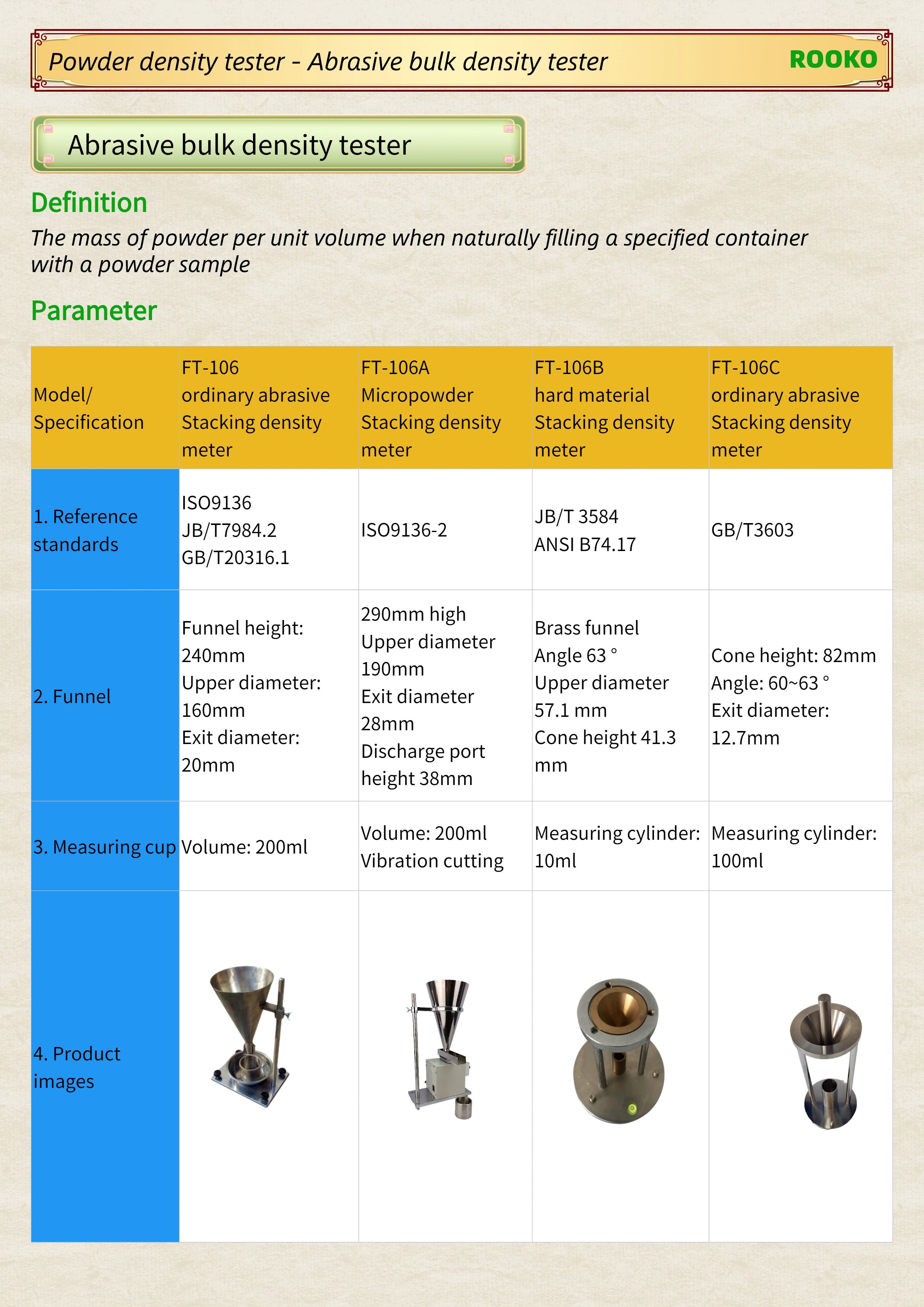 ROOKO瑞柯微專注于粉末/粉體/顆粒流動性測試儀,振實/松裝/堆積密度測定儀,休止角測定儀,安息角測定儀,粉末電阻率測試儀,粉體綜合特性測試儀,四探針/方阻/電阻率測試儀,材料體積/表面電阻率測試儀廠家提供技術資訊和解答