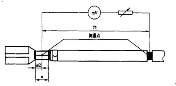 如上示兩圖中,圖1導線首端帶有端子,測量75mm長帶端子導線的兩端壓降,記錄數據備用;圖2中導線不帶端子,直接測量75mm長導線的兩端壓降,記錄數據;用圖1中測得的壓降減去圖2中測得的壓降即為被測端子的壓降。