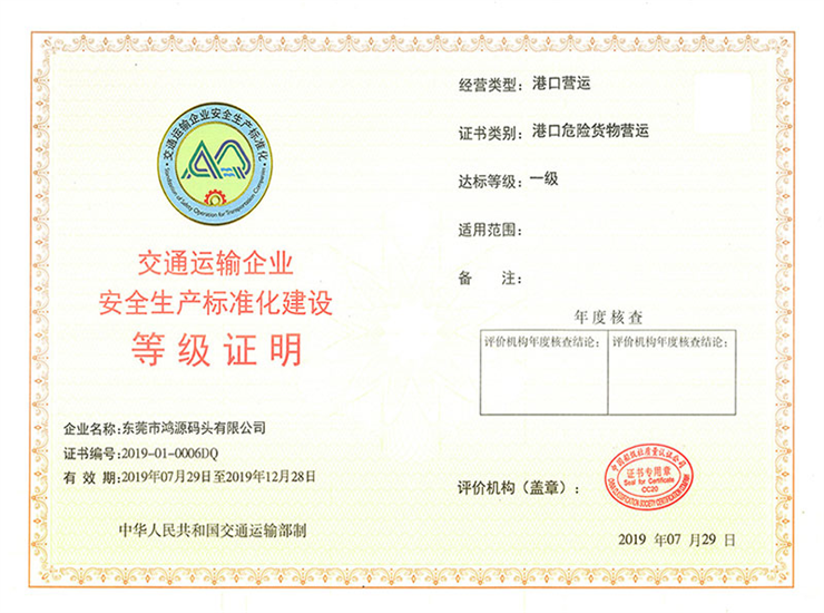 安全生產(chǎn)標(biāo)準(zhǔn)化一級企業(yè)