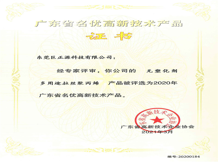 廣東省名優(yōu)高新技術(shù)產(chǎn)品證書(拉絲料)