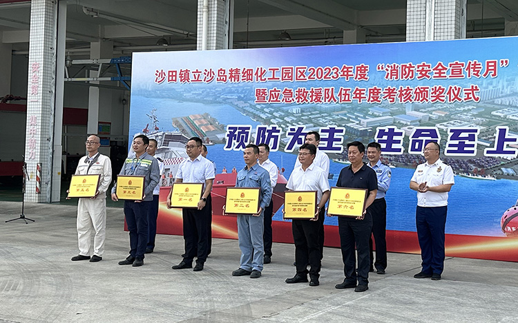 沙場秋點兵,群英大比拼。11月10日,沙田鎮立沙島精細化工園區2023年度“消防宣傳月”啟動儀式暨應急救援隊伍年度考核在濱海灣新區消防救援大隊舉行。巨正源旗下盛源石化代表隊榮獲2023年應急救援隊伍業務技能年度考核團體總成績第一名,巨正源科技公司代表隊榮獲年度考核團體總成績第二名、分隊總成績第一名,巨正源科技公司羅路福、盛源石化梁月明等6名參賽選手包攬個人項目總成績前六名。